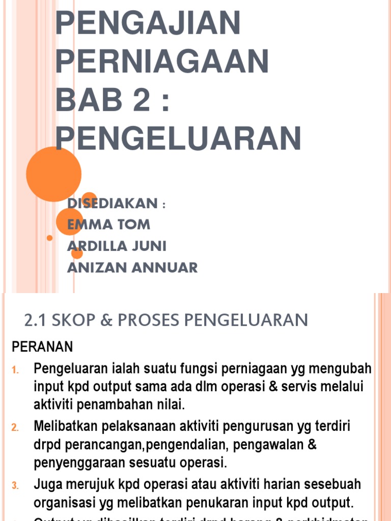 Go Bab 1 Pengeluaran Pptx Bab 1 Pengeluaran Definisi Pengeluaran Penghasilan Barang Melaui Proses Transformasi Yang Menukarkan Input Kepada Output Course Hero