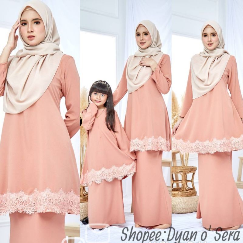 Baju Kurung Lace Raysha Ibu Anak Peach
