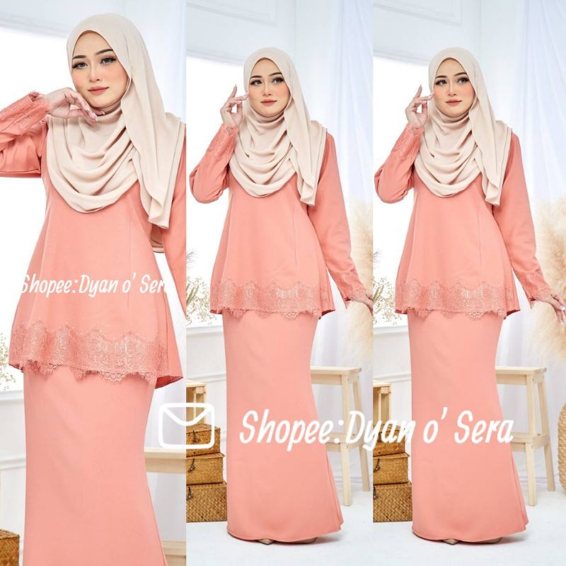 Baju Kurung Lace Serena Peach Melon Muslimahclothing Com